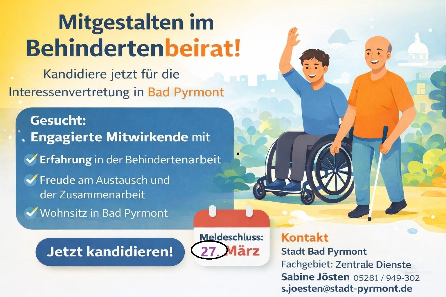 Kandidaten für den Behindertenbeirat gesucht! Meldefrist bis 27.03.26 verlängert!