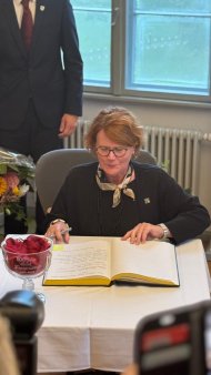 Im Rahmen des Festaktes trug sich auch die langjährige Vorsitzenden des Städtepartnerschaftsvereins, Marianne Weiland, in Ehrung ihres Engagement in der Städtepartnerschaft, in das Goldene Buch der Stadt Bad Freienwalde ein.
