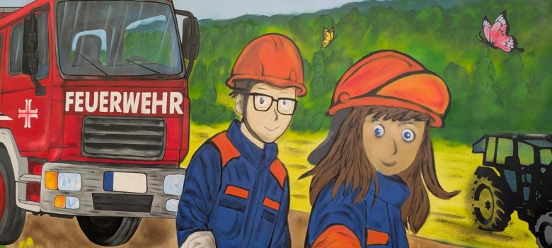 Wandzeichnung im Raum der Kinderfeuerwehr