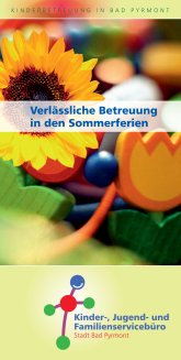 »Familien« heute hat vielfältige Gesichter. Sie steht immer neuen Herausforderungen gegenüber. Das Familien- und Kinderservicebüro bietet Ihnen eine zentrale Anlaufstelle mit kompetenter Beratung in allen Fragen zur Kinderbetreuung, besonders der unter Dreijährigen in Bad Pyrmont.